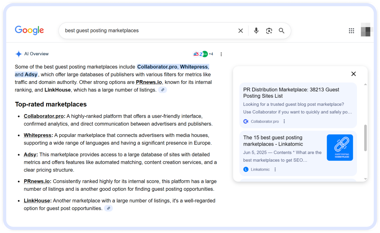 - • Google AI Overviews (AIO) in Collaborator: a New Metric for Effective Link Building