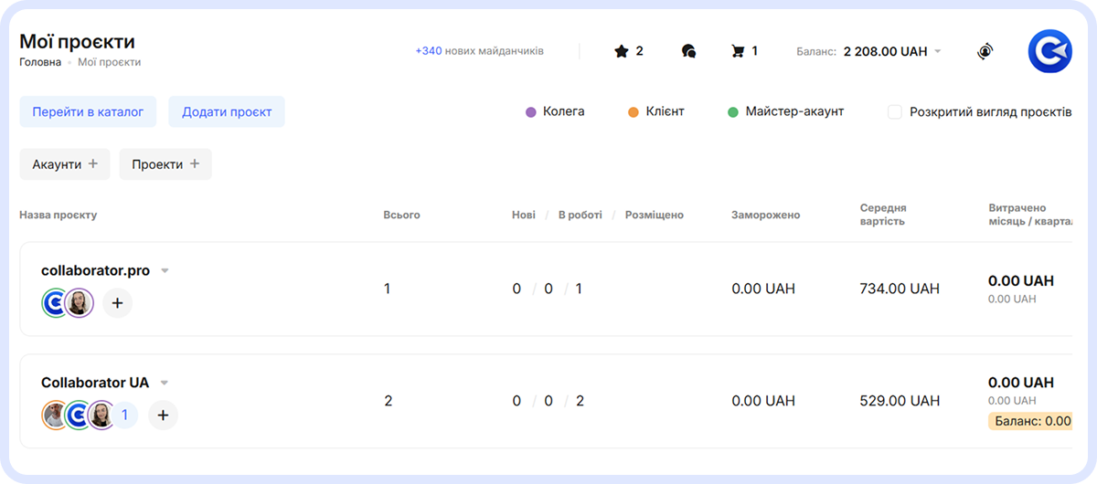 Майстер-акаунт у Collaborator: ефективне управління клієнтами, командою та бюджетами