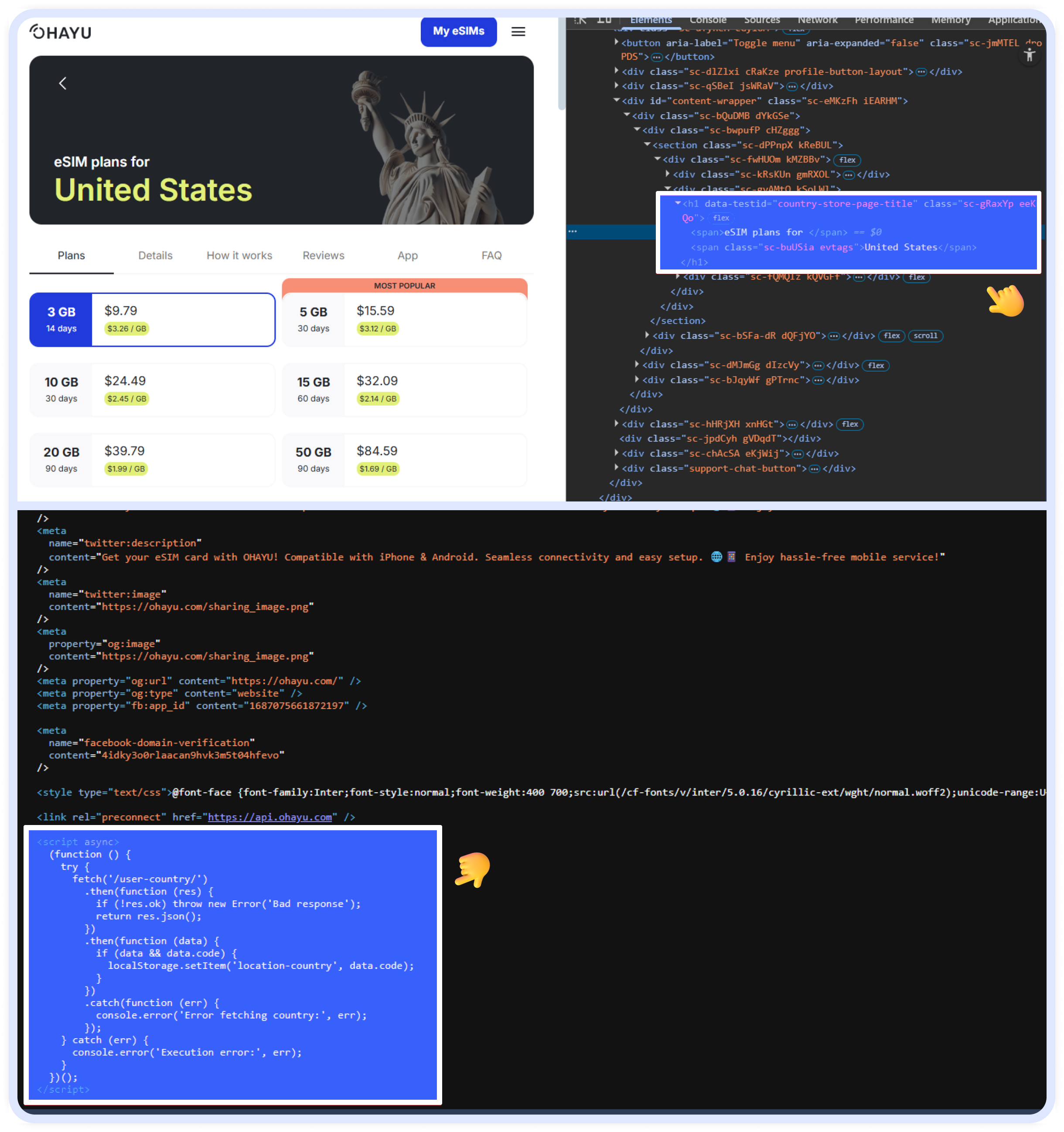 The setup of the Ohayu eSIM website consists of two technically different parts: